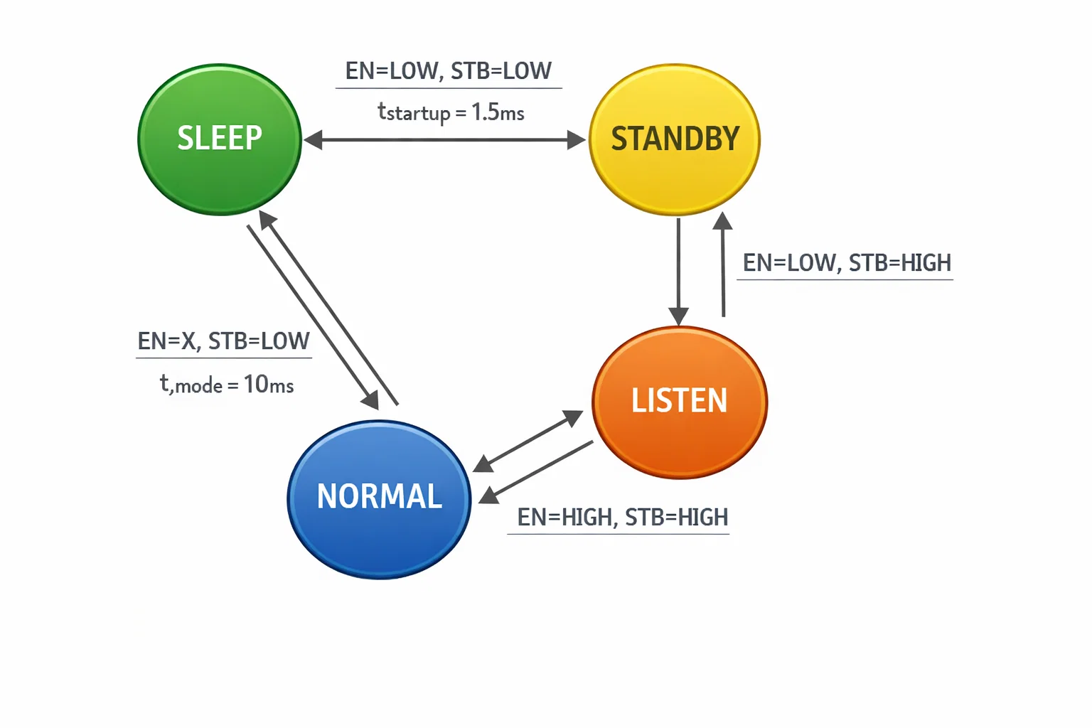 | Mode Transition Time | Undefined | 10 ms (guaranteed) |