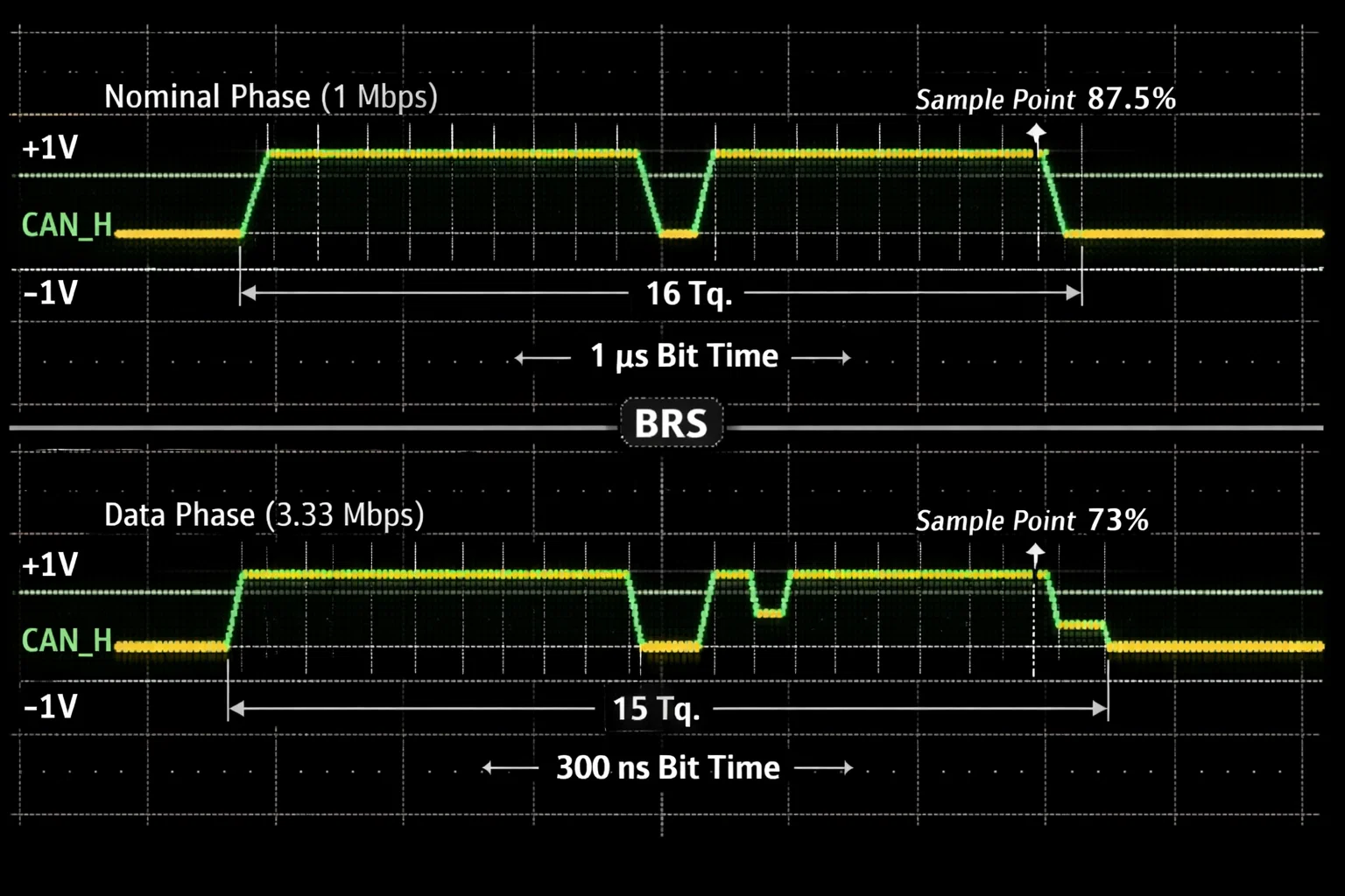 - Signal Integrity Validation: High-speed CAN-FD requires careful board design and conservative timing. Oscilloscope validation of differential signals is essential for production reliability.