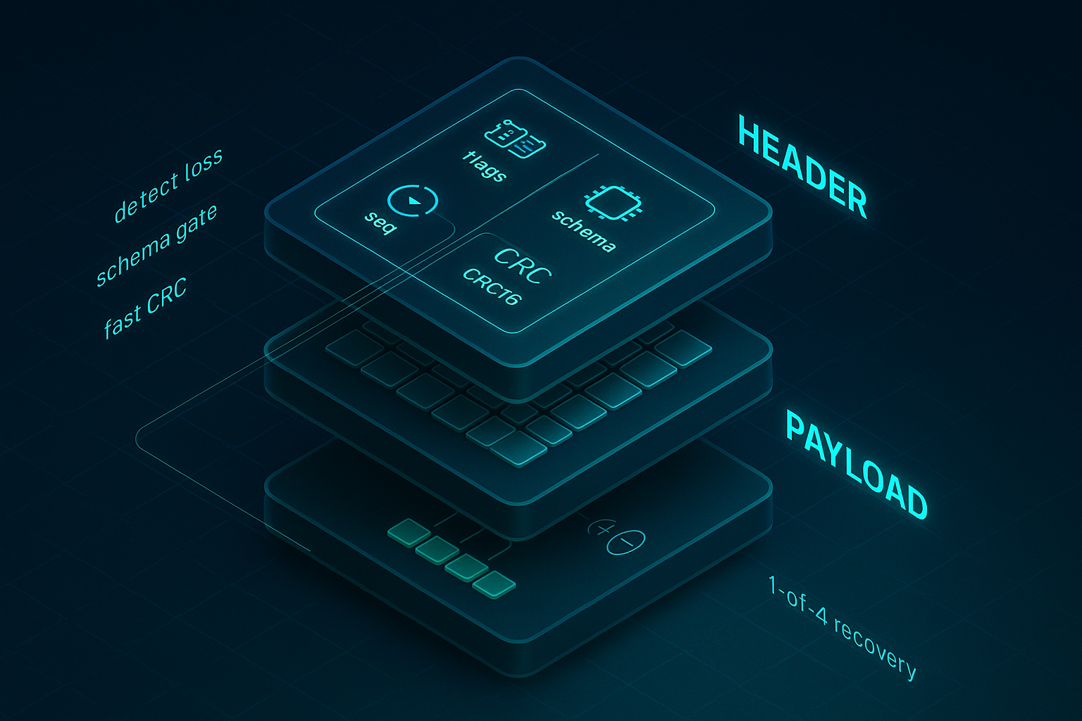 Tip: Put the header up front, payload fixed-length where possible, and align to DMA-friendly boundaries so the CRC happens zero-copy.