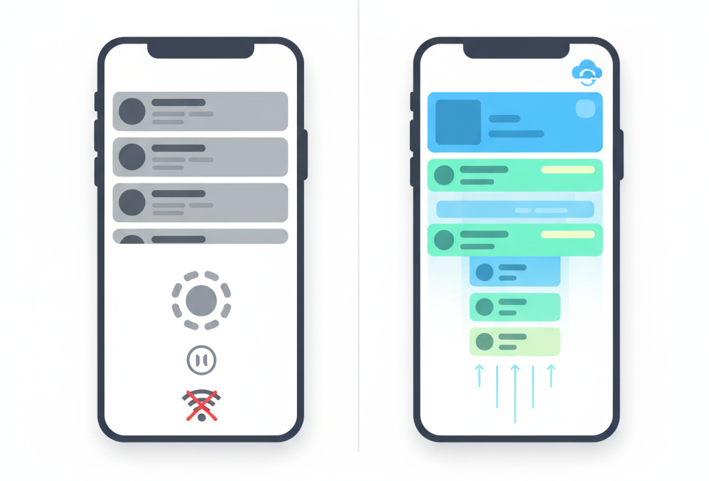 The psychology here matters: showing cached content immediately eliminates the dreaded blank screen. Users can start scrolling and engaging while fresh content loads silently. Even on poor connections, the feed feels responsive and alive.