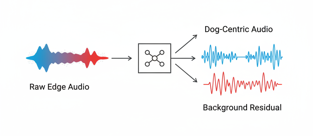 Raw edge audio is a cocktail of target sounds (dog sounds) mixed with everything else (HVAC hum, dishwasher noise, footsteps). Before detecting anomalies, we needed to separate the signal from the noise.