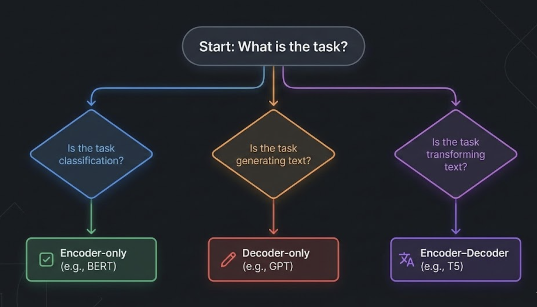 Decoder‑Only → When You Need Generation or Reasoning