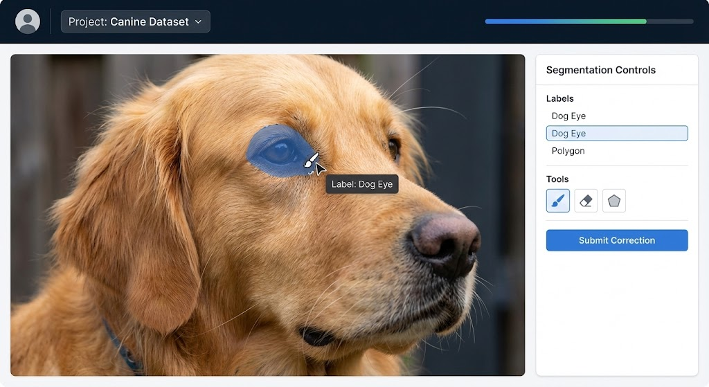 At Hoomanely, we faced this head‑on while building reliable dog eye segmentation for our pet‑health sensing stack. A model that worked well in the lab would occasionally fail in a dim living room, or mis-segment an eye when a dog looked sideways. Instead of rebuilding a dataset from scratch each time, we designed a workflow where the model continually retrains on real errors - right on the edge or in small increments.