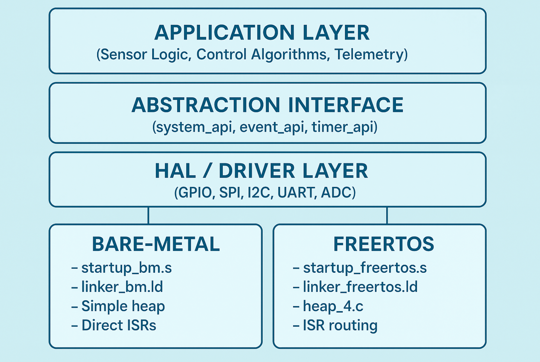 This article explains how we built that system, enabling our platform to support Bare-Metal and FreeRTOS using shared interfaces with RTOS-specific linker scripts, heap strategies, and startup pipelines.