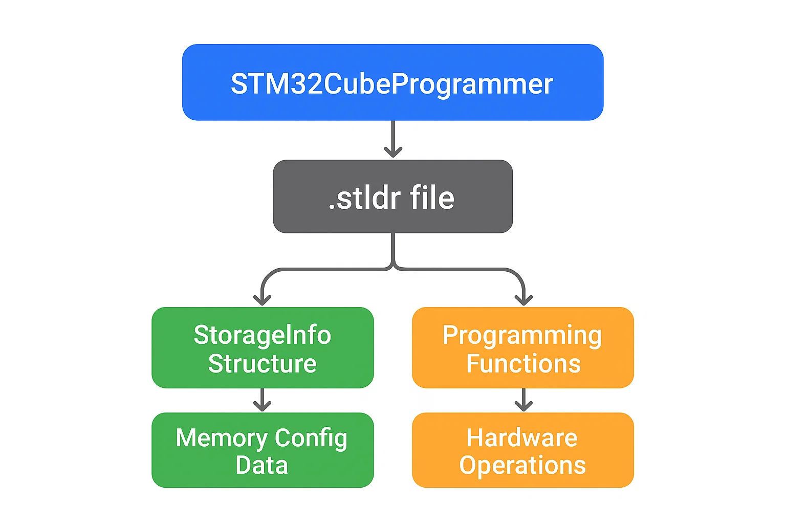 The .stldr file format is essentially an ELF executable that STM32CubeProgrammer loads and executes on the target MCU to handle external memory operations.