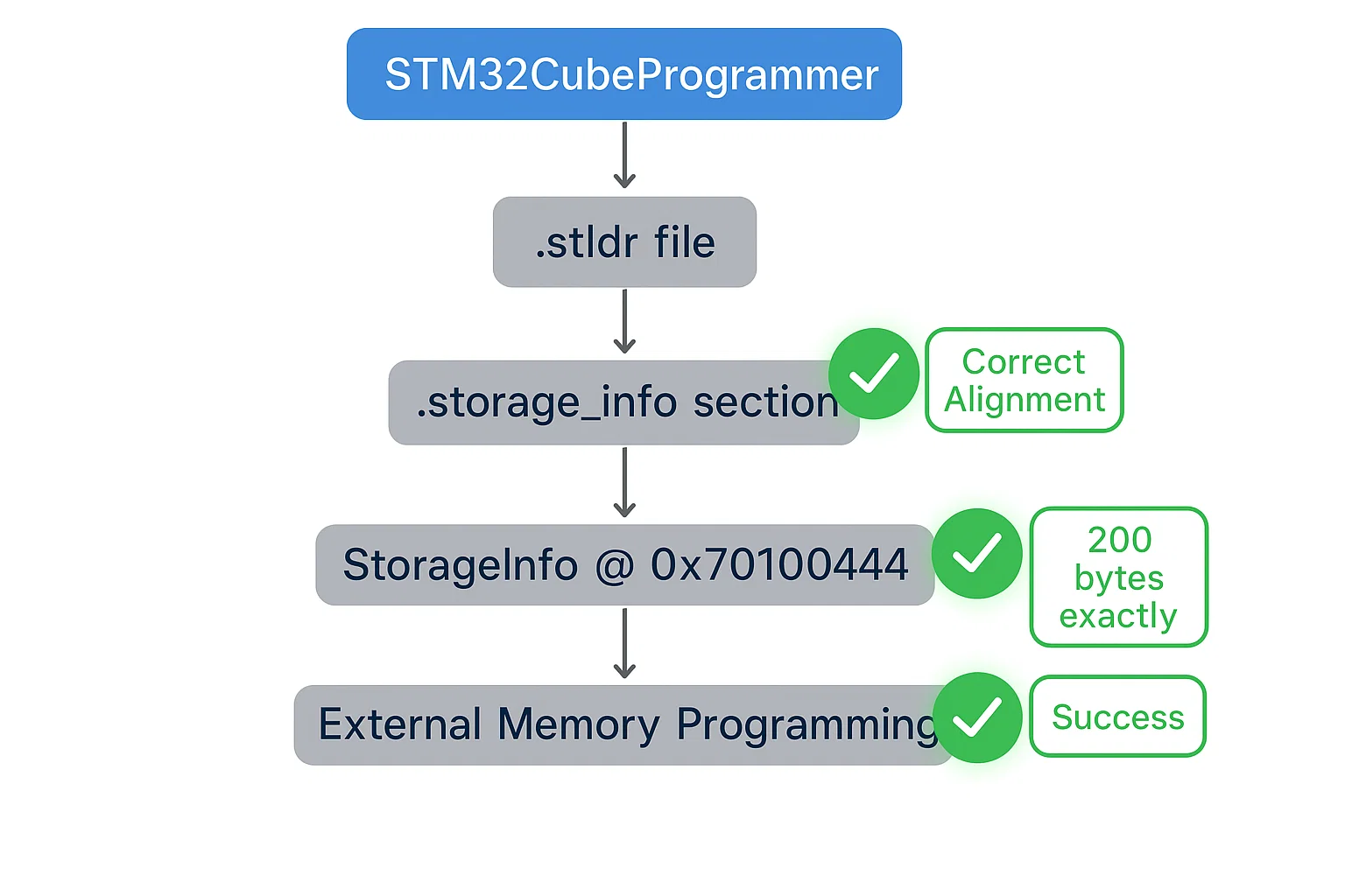 The next time STM32CubeProgrammer refuses to parse your external memory loader, start with the basics: verify your section names, check your alignment, and ensure your linker script matches your code's expectations.
