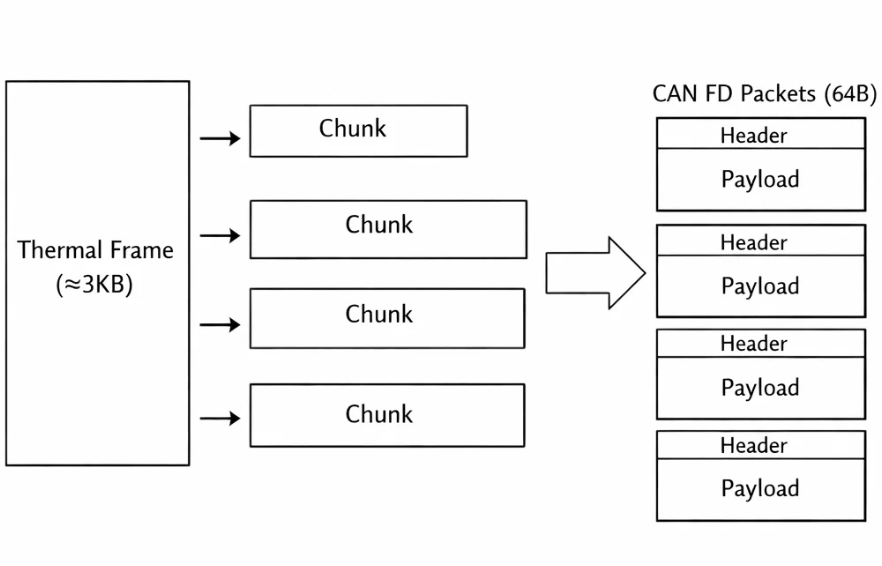 Our application required transmitting a thermal image array consisting of 768 floating-point values (approx. 3KB of data) from a sensor node to a main controller. While 3KB sounds trivial in web development, in a hard real-time embedded system with 8Mbps CAN FD links and limited RAM, it presents significant challenges.