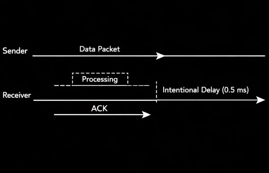Version 2: The Blind Wait We added vTaskDelay(1) between packets. Reliability improved to 99%, but we still had "hiccups" when the receiver was erasing flash sectors. 99% isn't good enough for data streams where 1 missing byte corrupts the file.