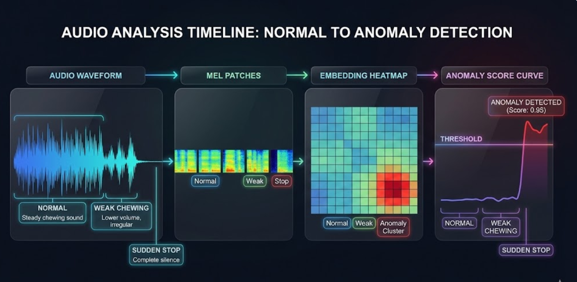 Detecting when something "sounds wrong" during a pet's mealtime seems simple - until you try to engineer it. Background noise, human speech, utensils clinking, bowls moving, fans humming, and wildly different pet eating styles create a dense acoustic jungle. Within this chaos, the goal is to identify subtle anomalies: hesitation, discomfort, choking-like patterns, sudden stops, or unusually loud gulps.