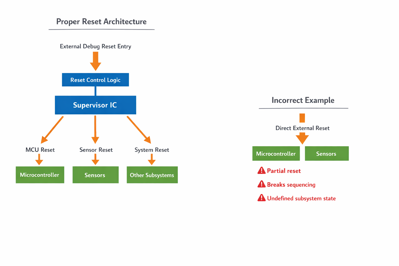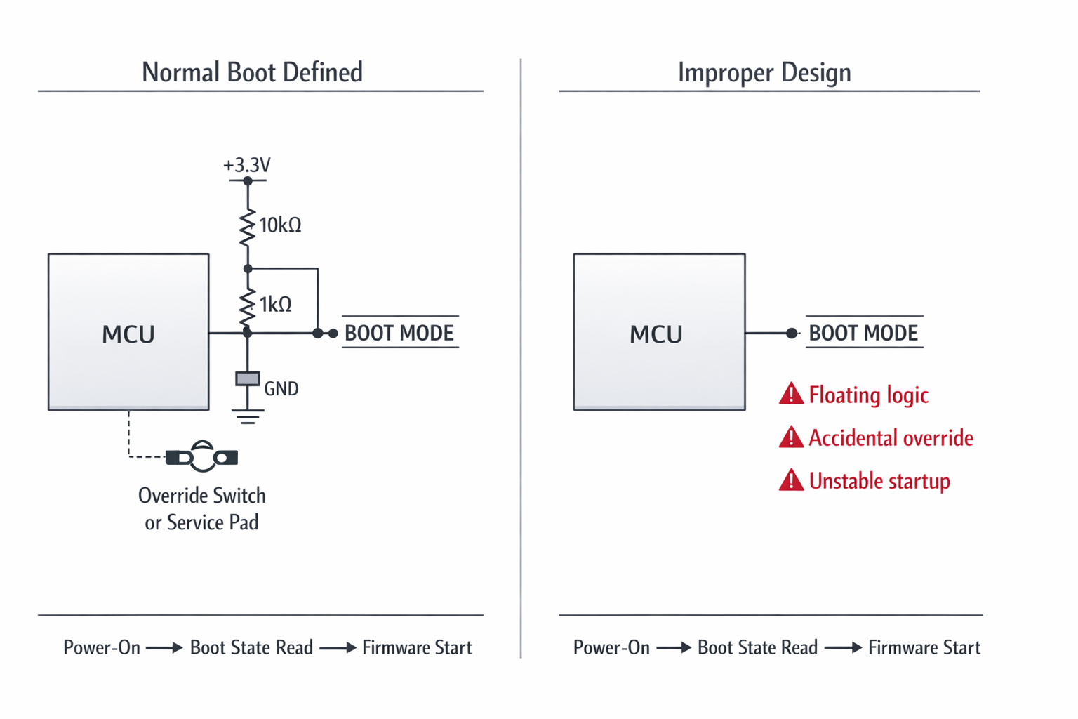 Boot, reset, and power-up must remain deterministic.
