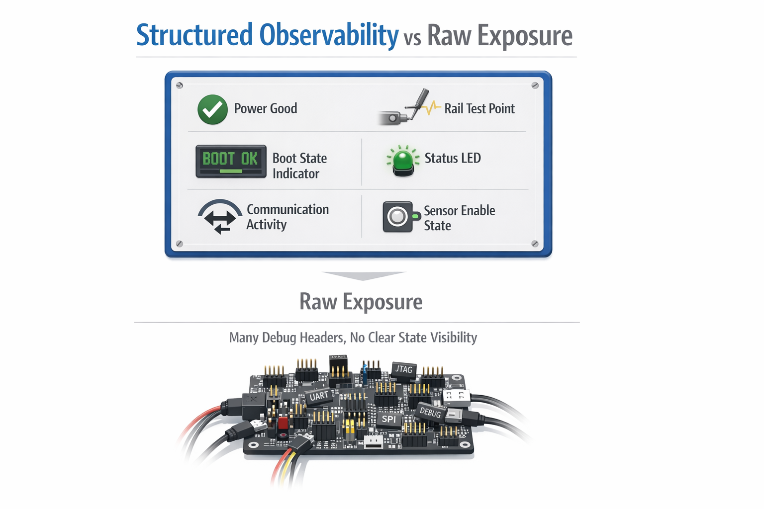 That sounds obvious, but it changes the board design significantly. Because the best debug access is not the one that exposes everything. It is the one that gives the right access, at the right time, in the right form.