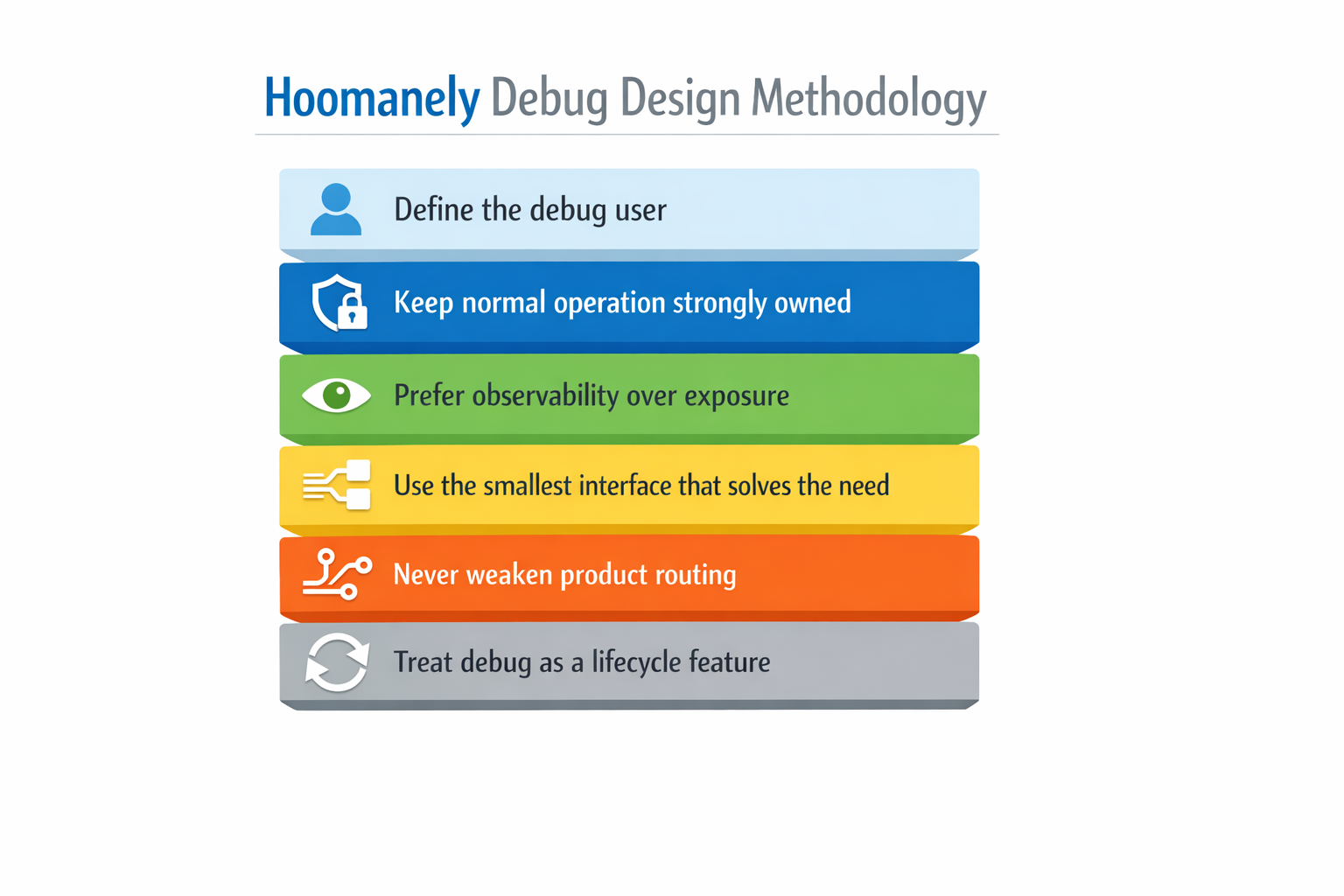 A good debug design increases observability without increasing confusion.
