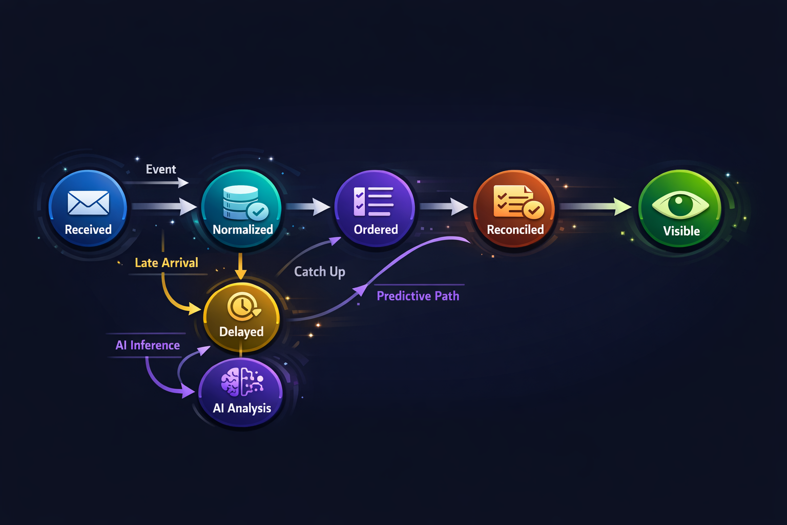 Modern product timelines are assembled from distributed, asynchronous, and probabilistic inputs: user actions from mobile devices, background jobs, delayed sensor uploads, enrichment pipelines, retries, deduplications, and increasingly, AI-generated inferences that may arrive minutes or hours later—and may even change over time.