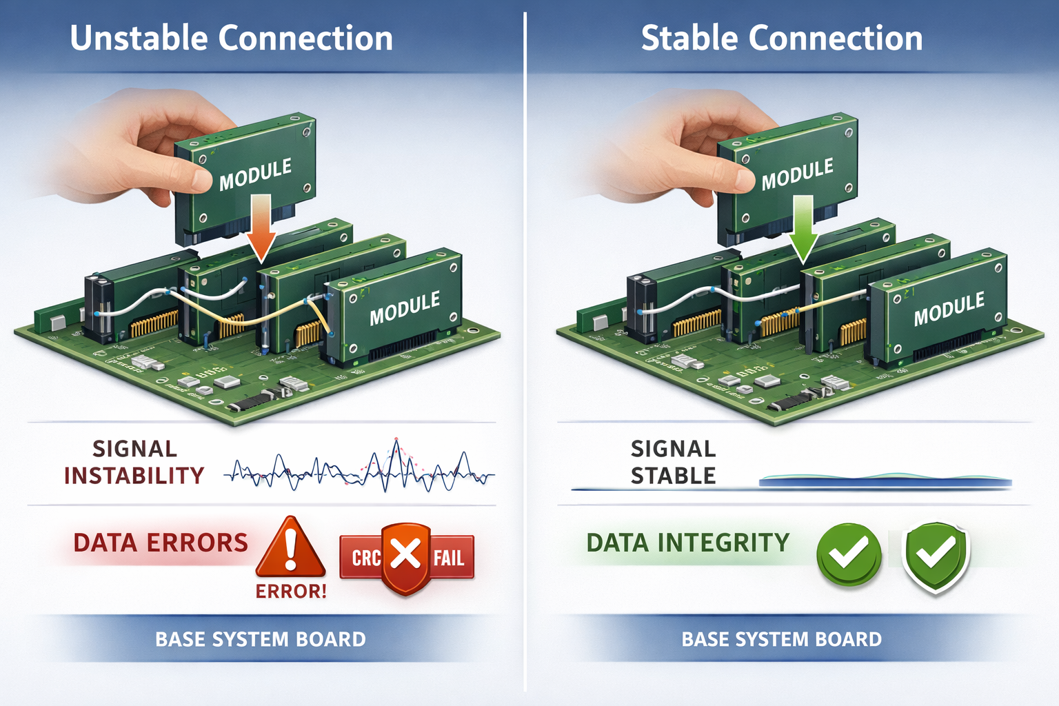 - 30–50% reduction in bus retry events during live insertion