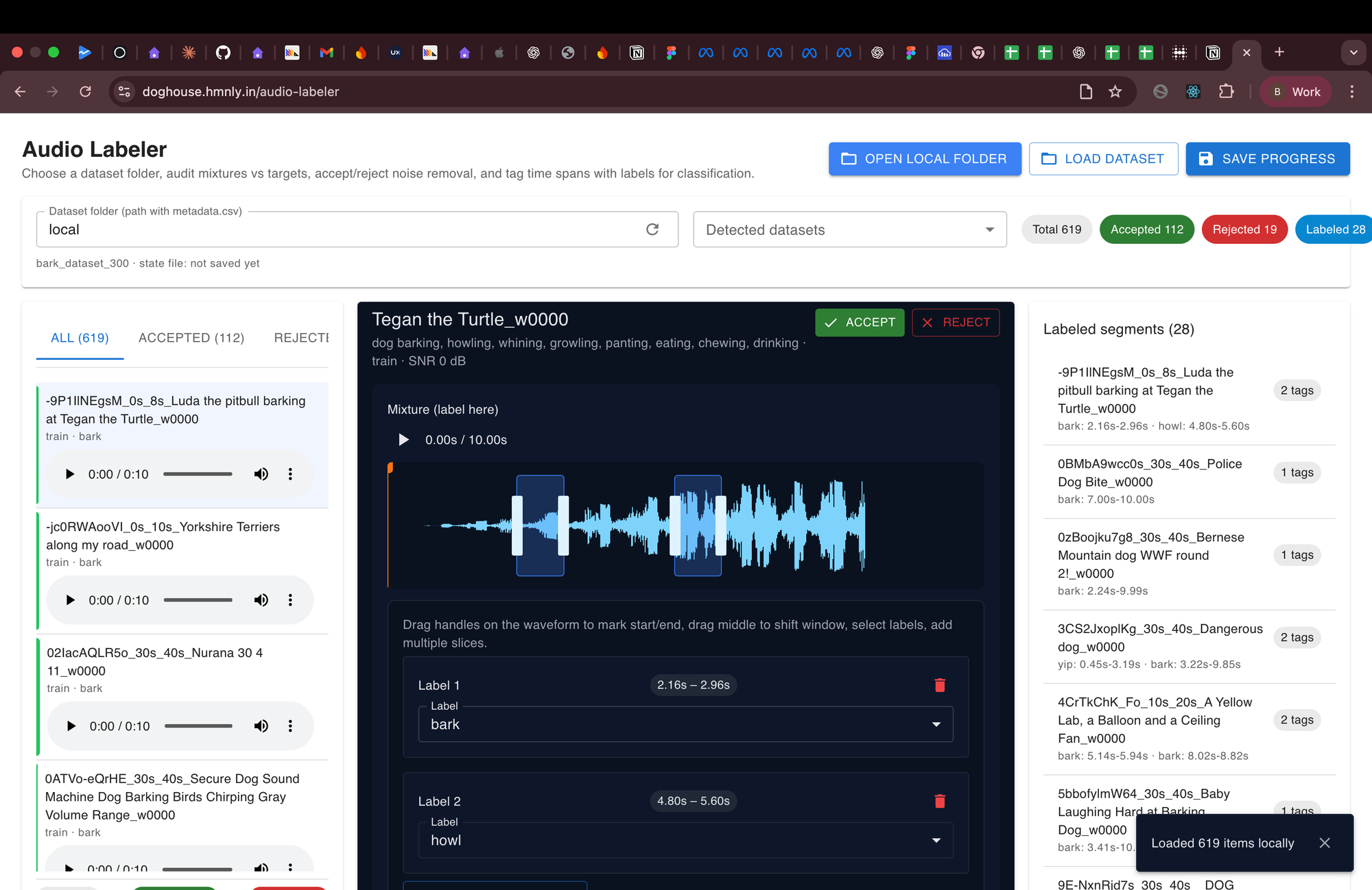 We started with the usual approach: scrape audio clips from public sources, bucket them by class (bark, howl, cough, sneeze, drinking, eating), and train a classifier.