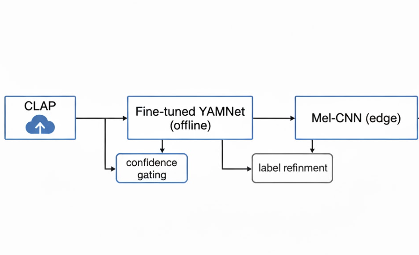 Importantly, CLAP was never intended to be accurate enough for deployment. Its role was to turn unlabeled audio into a weakly labeled dataset.