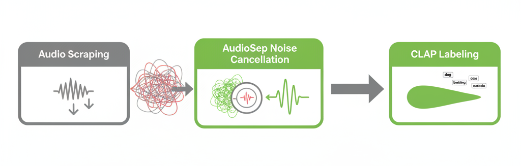 Here's where it gets interesting. We ran every audio sample through AudioSep, a source separation model that can isolate specific sounds from noisy backgrounds. Think of it as extremely advanced noise cancellation—it doesn't just remove noise, it separates out the dog sounds from everything else in the recording.