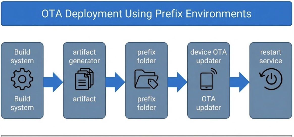 The most effective and scalable pattern for edge deployments is using per‑application dependency prefixes. Instead of replicating a full venv, only application‑specific dependencies are stored in isolated folders.