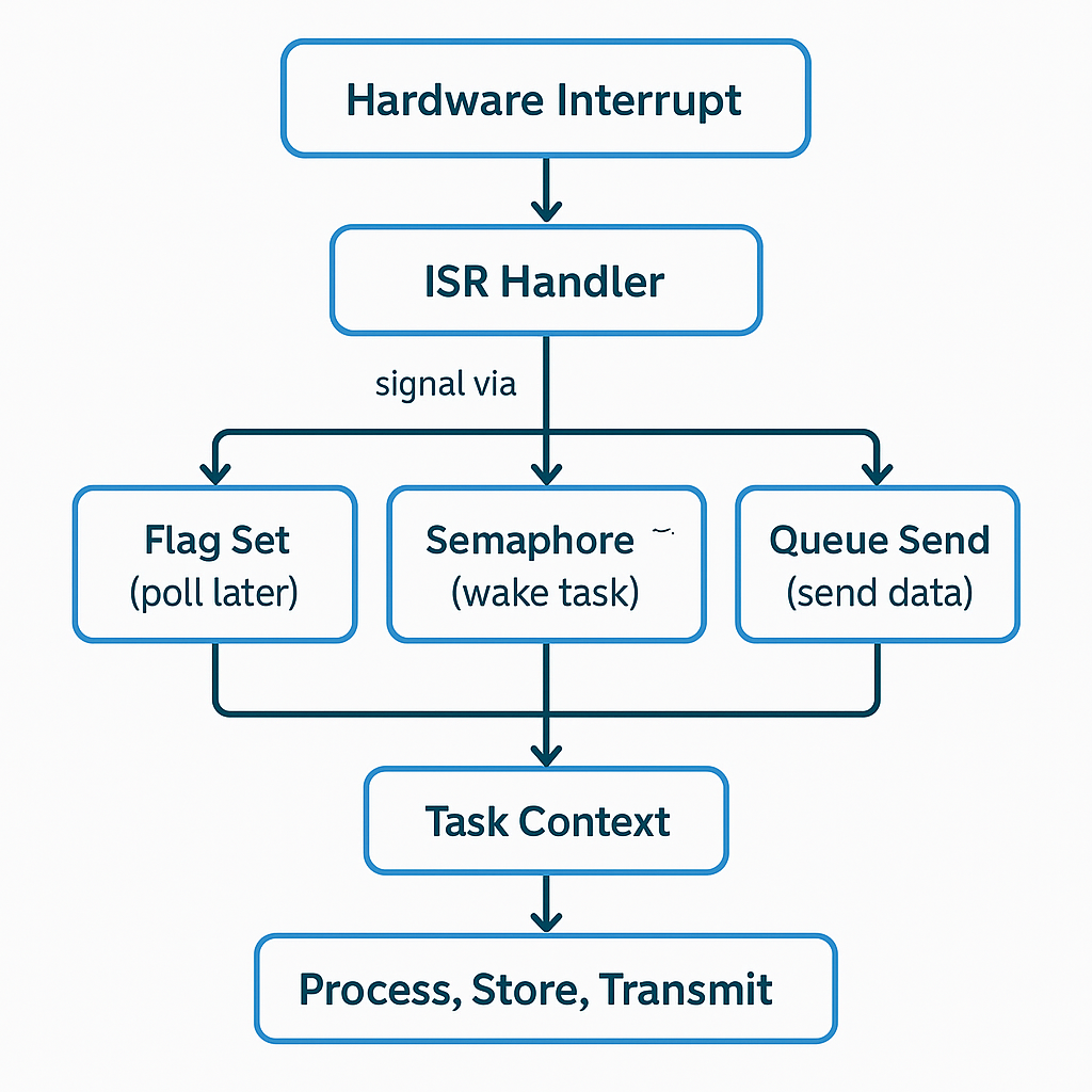 This post was written from hands-on RTOS experience — across FreeRTOS, Zephyr, and bare-metal systems — to help engineers bridge the invisible gap between interrupts and tasks.