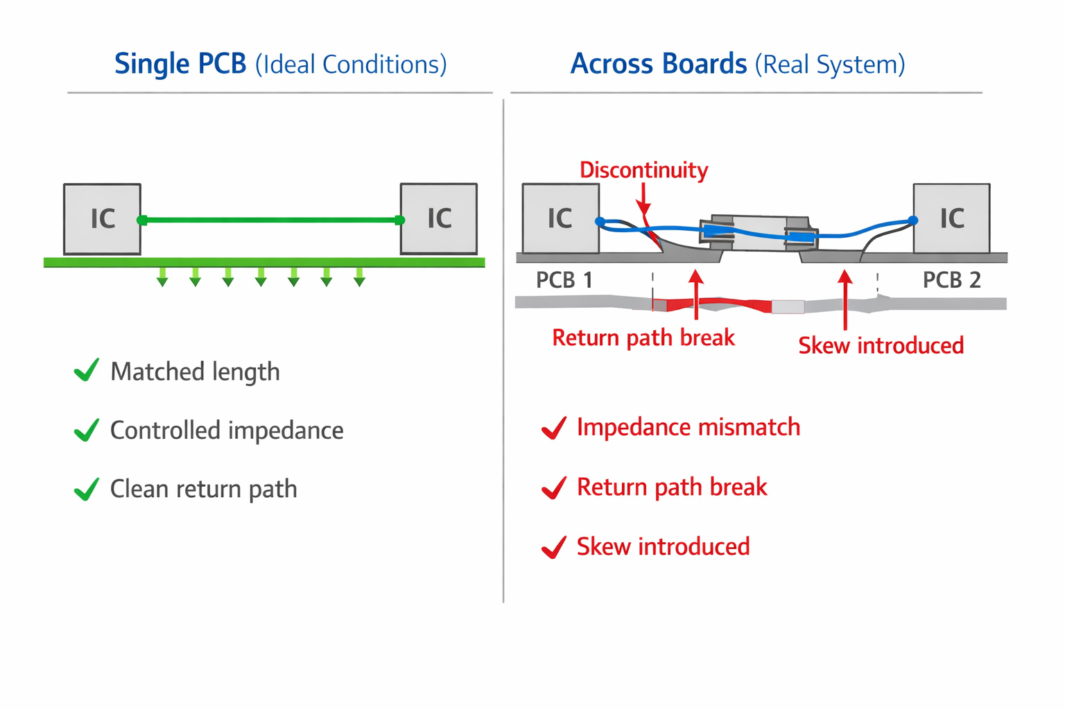 A high-speed interface may look perfect within a single board.