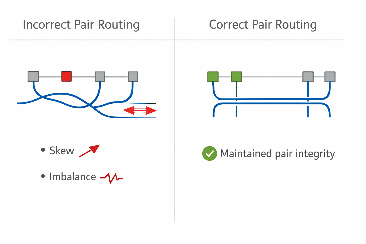 - maintain signal pairing across the entire path