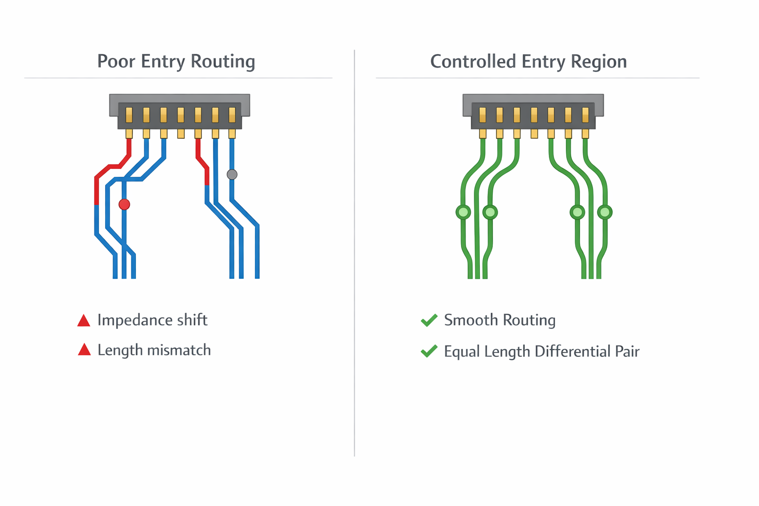 The connector does not fix poor routing.