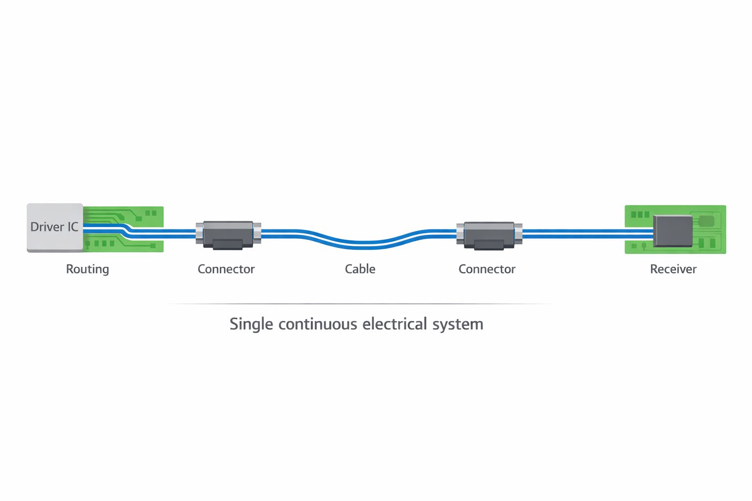 - PCB → connector → cable → connector → PCB