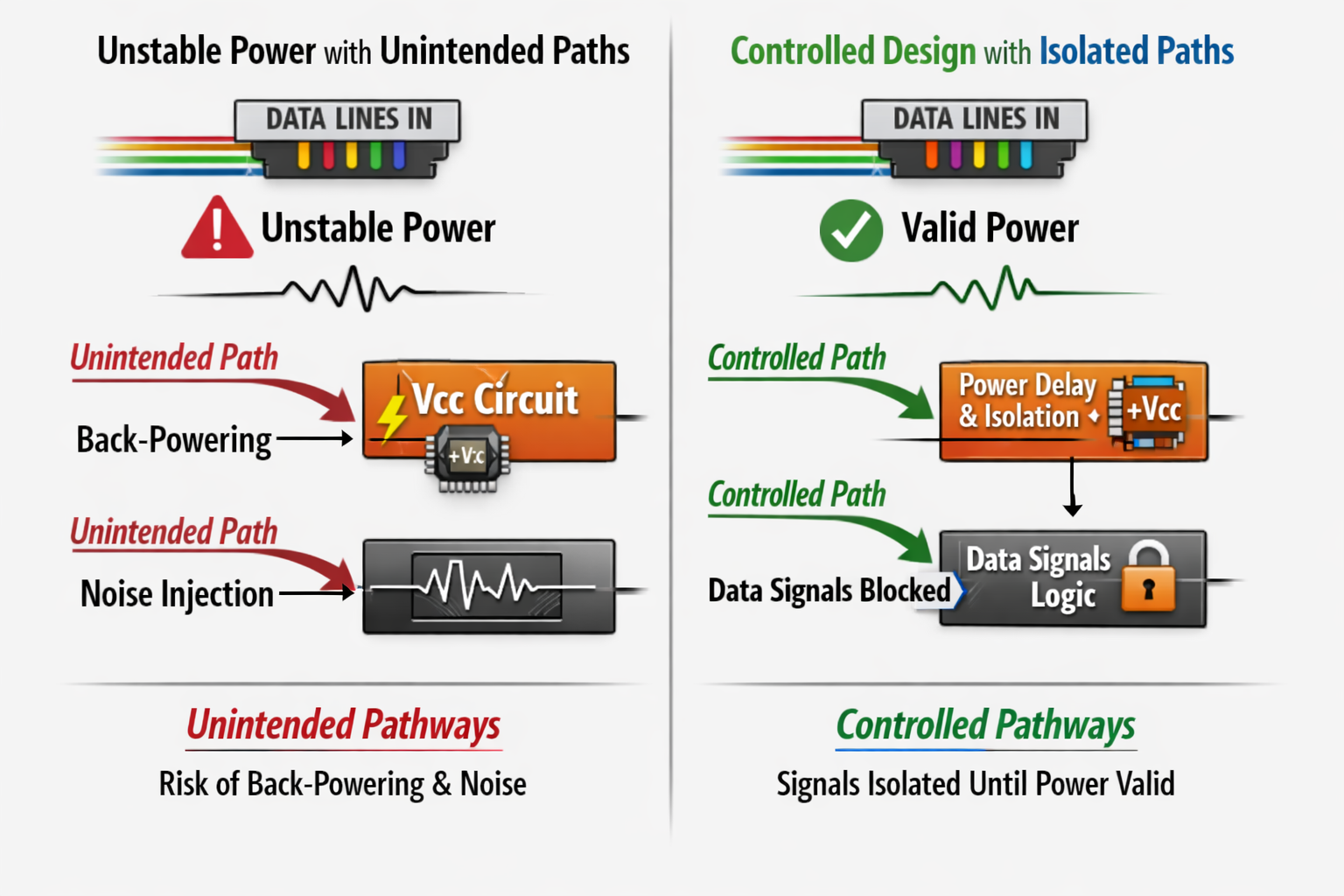 This often means intentionally delaying or isolating data paths until power conditions are sane—not because data is fragile, but because it is powerful.