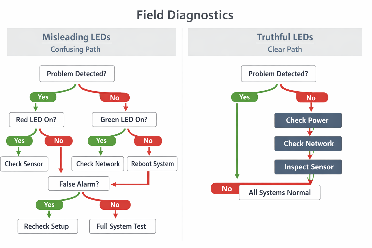 - Field technicians misinterpreting failures.