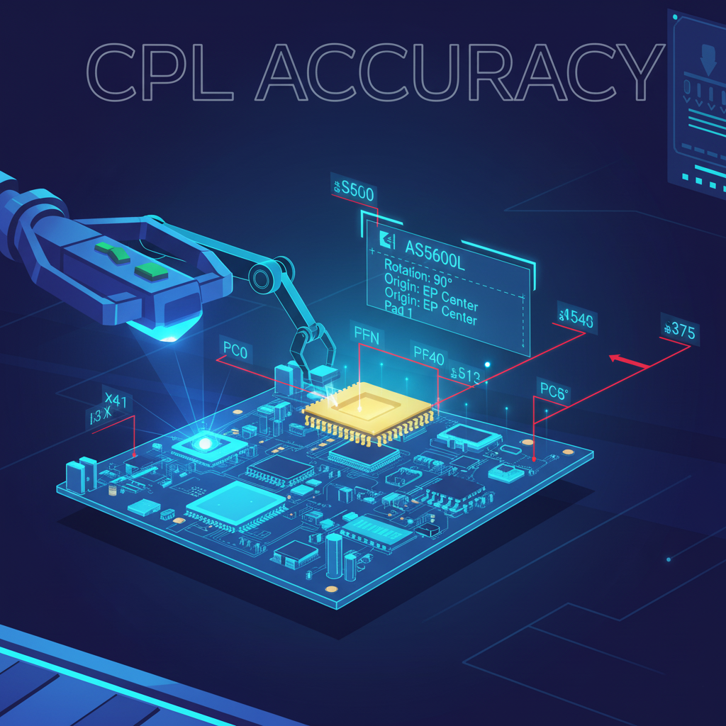 A CPL (Component Placement List) tells the factory exactly where every component goes (X/Y location, rotation, and reference designator).