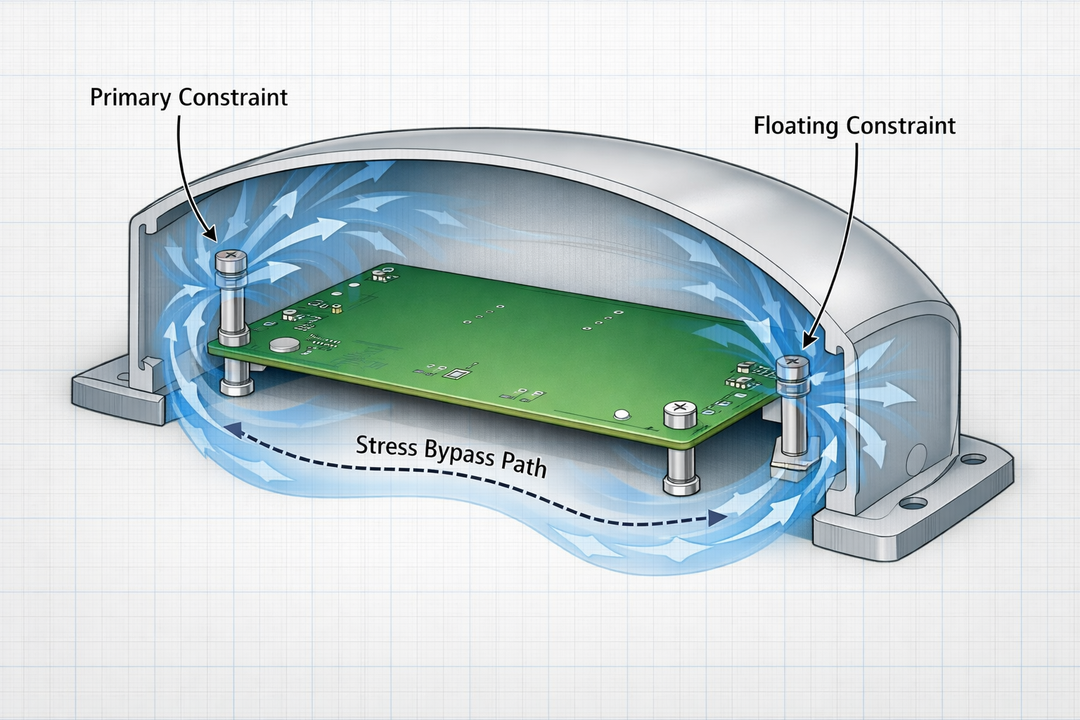 In curved enclosures, over-constraining a PCB is the fastest way to inject stress.
