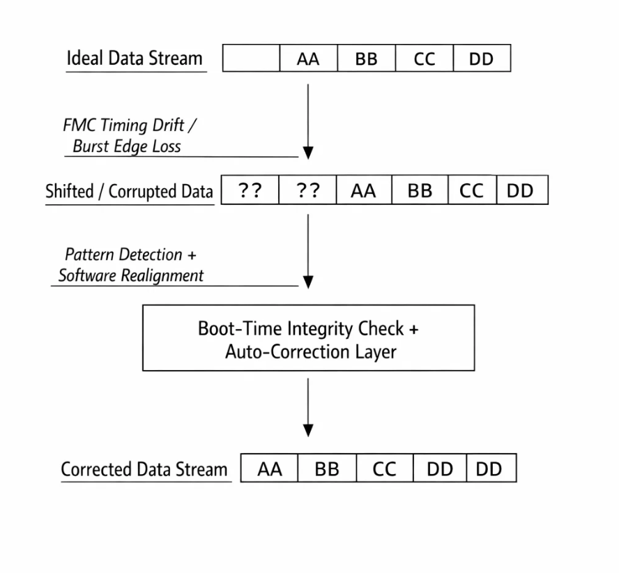 - Data corruption manifesting as consistent byte-level misalignment during high-throughput DMA bursts