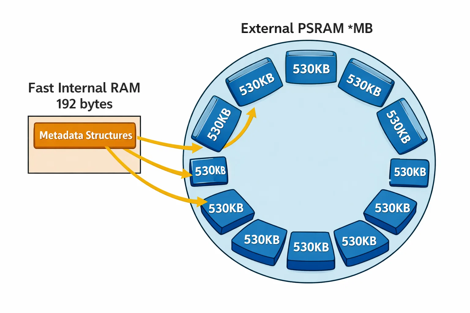 // Metadata remains in fast internal RAM
