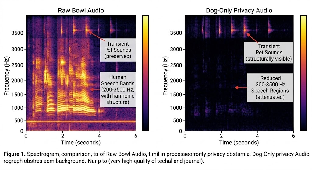 In a connected pet product, microphones can capture exactly what we need and a lot of what we do not. We want chewing, lapping, barking, and other pet-health signals. We do not want intelligible human conversation in stored audio. That is both a privacy concern and a trust issue.