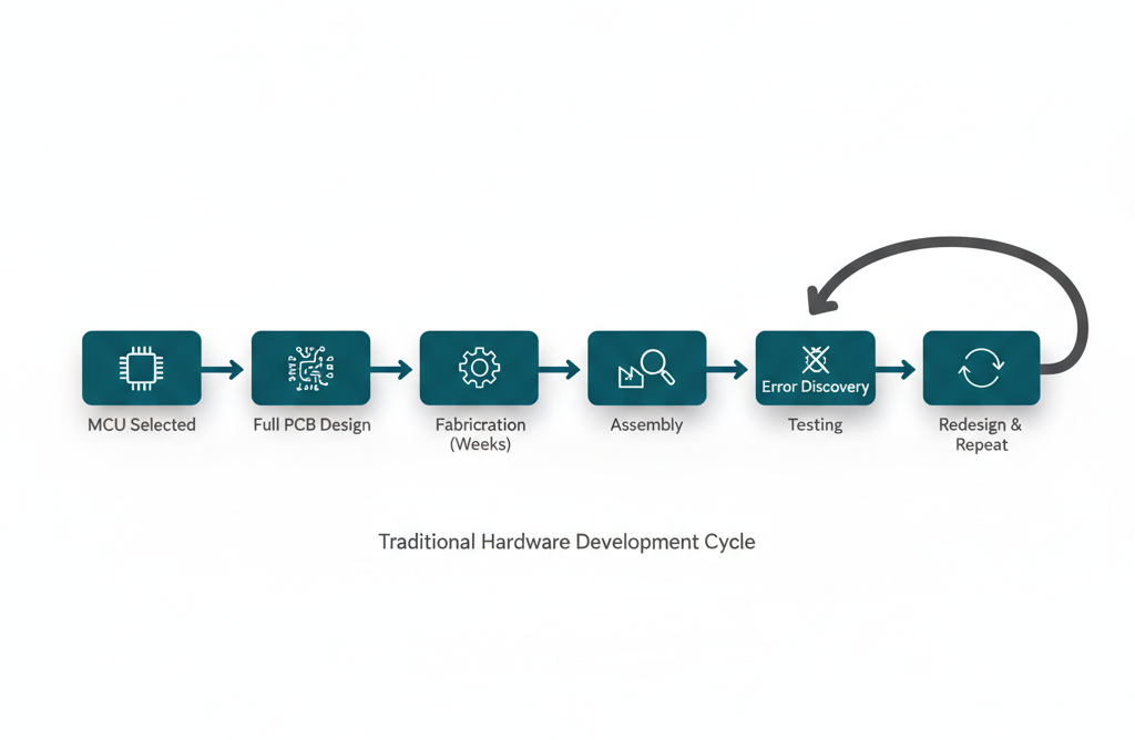 The conventional hardware development process is deeply sequential. You pick a microcontroller, design your entire system around it, order PCBs, wait for manufacturing, assemble them, and finally—finally—start testing. If that MCU doesn't work out? If the documentation was incomplete or the SDK has bugs? You're back to square one.
