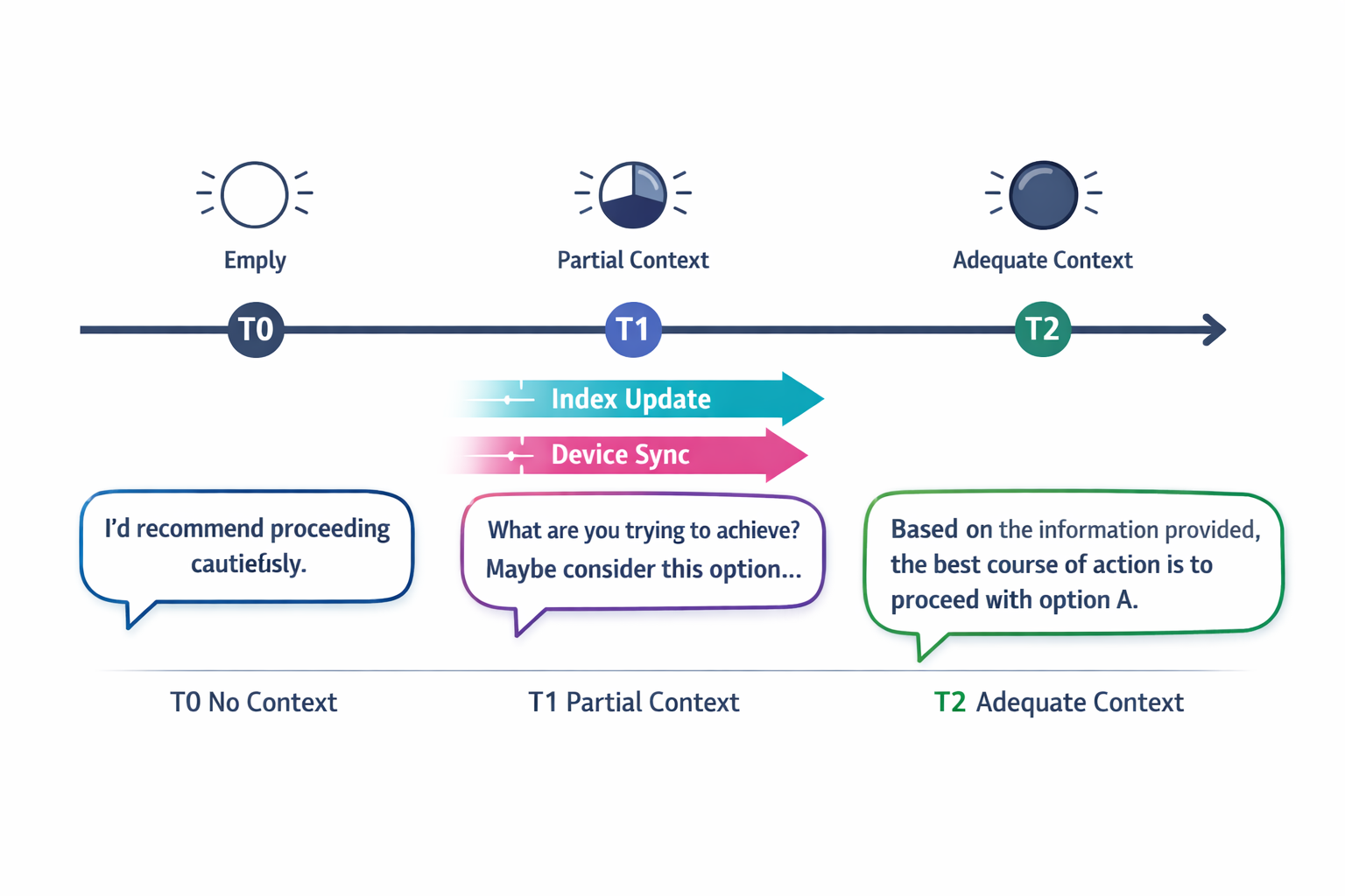 - Grade context into explicit states (no/partial/adequate/conflicting/stale).
