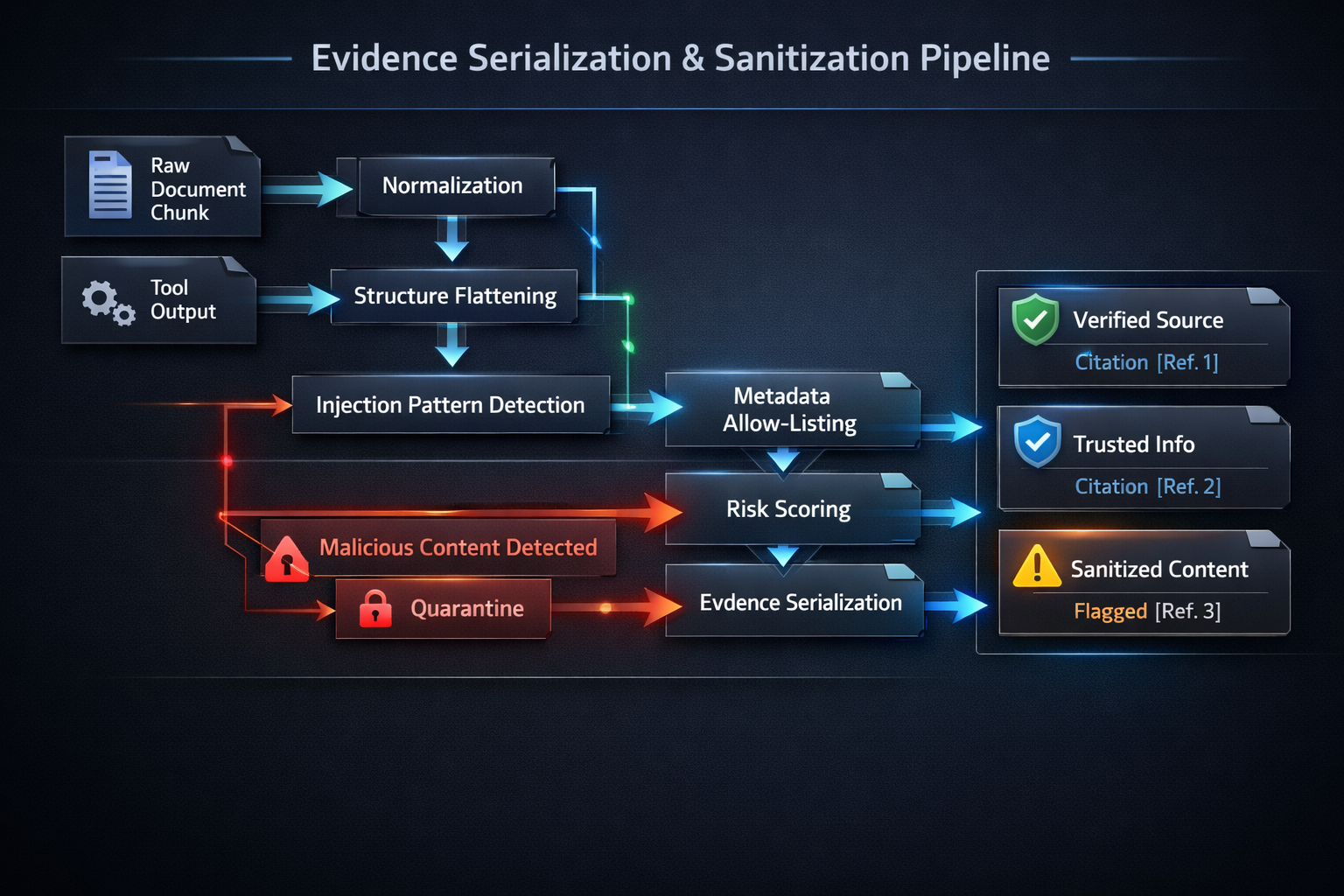 A practical pattern is to propagate sanitization outcomes into the evidence schema. That way, downstream generation and observability can both see whether a chunk was altered, flagged, or partially suppressed.