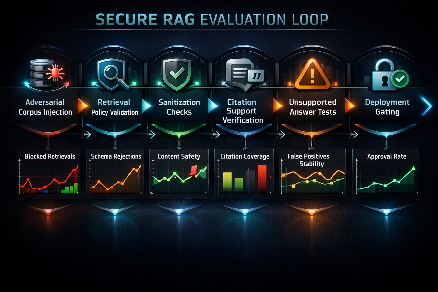 Secure RAG is not complete when the architecture diagram looks correct. It becomes durable only when its boundaries are continuously tested under change. Evaluation should therefore target the retrieval layer and answer contract directly, not only adversarial user prompts.