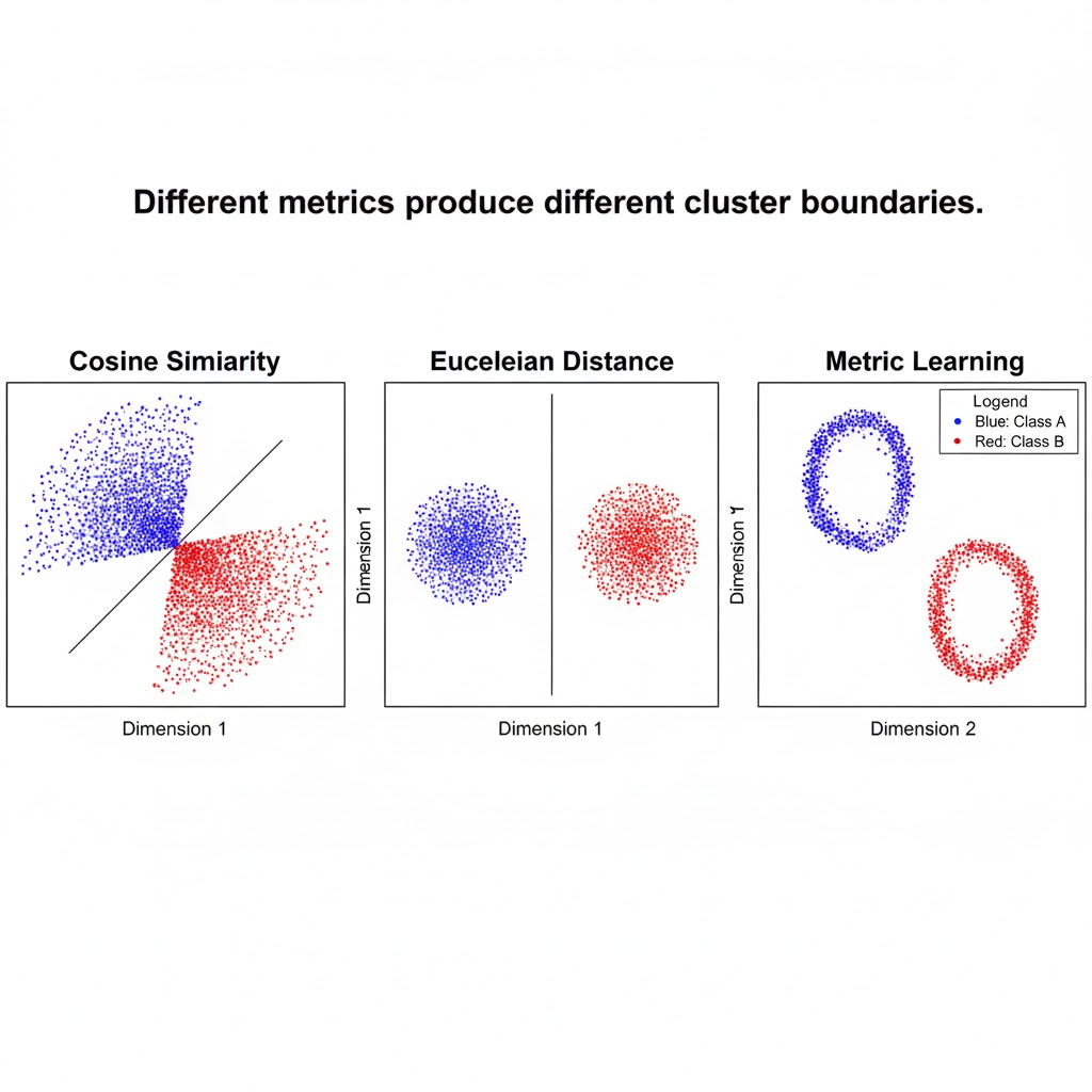 Not all distance metrics behave the same. Choosing the right one dramatically affects system performance.