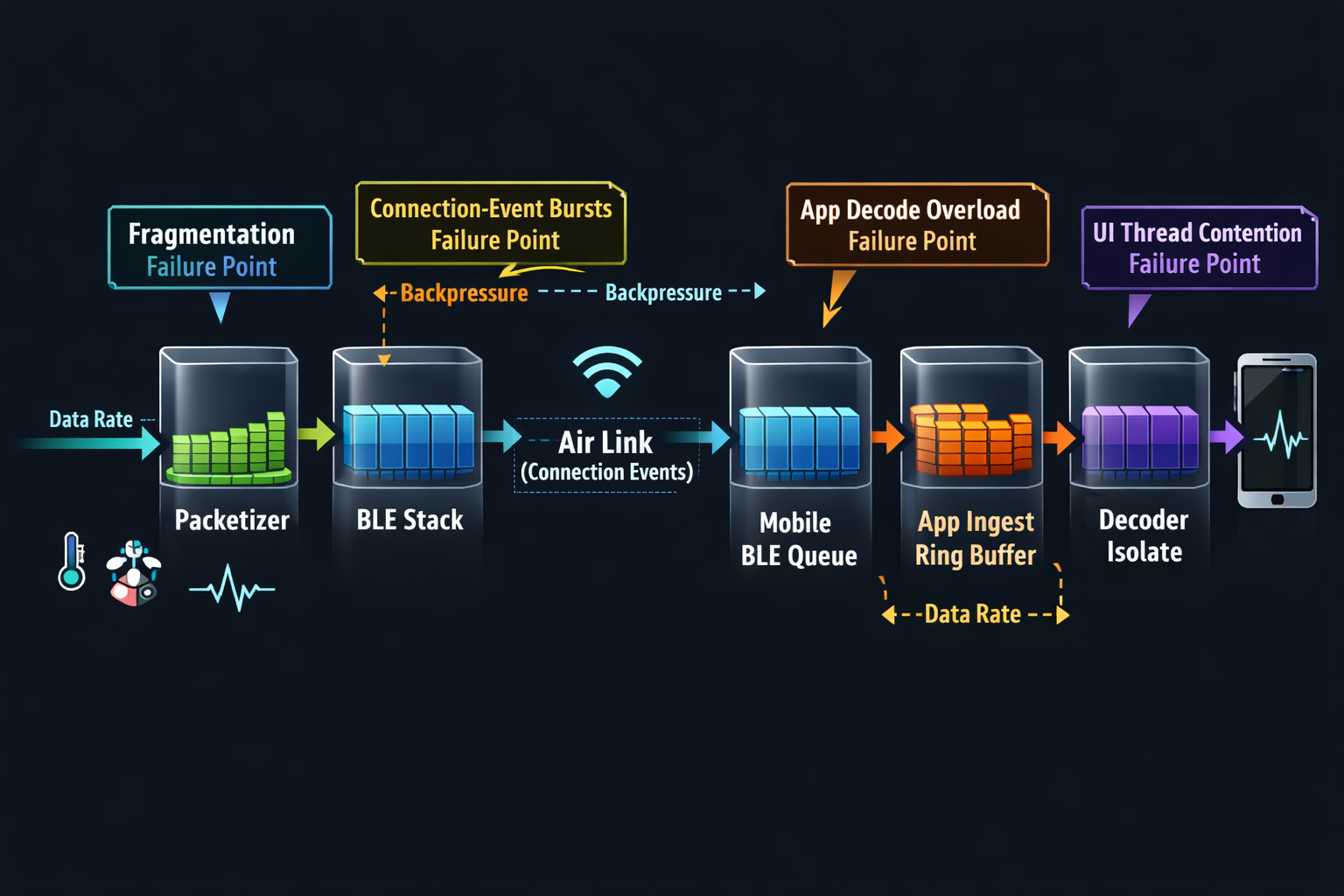 When BLE streaming feels unstable, the usual instinct is to tweak a couple of knobs—raise MTU, lower connection interval—and hope the stream “locks in.” That can work in a lab, but it’s fragile in production because you’re optimizing one layer without defining what the system is actually trying to guarantee.