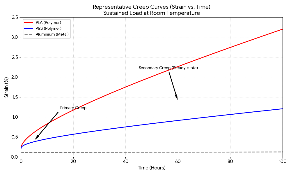 - ABS plastics can exhibit 1–2% strain over long durations under constant load