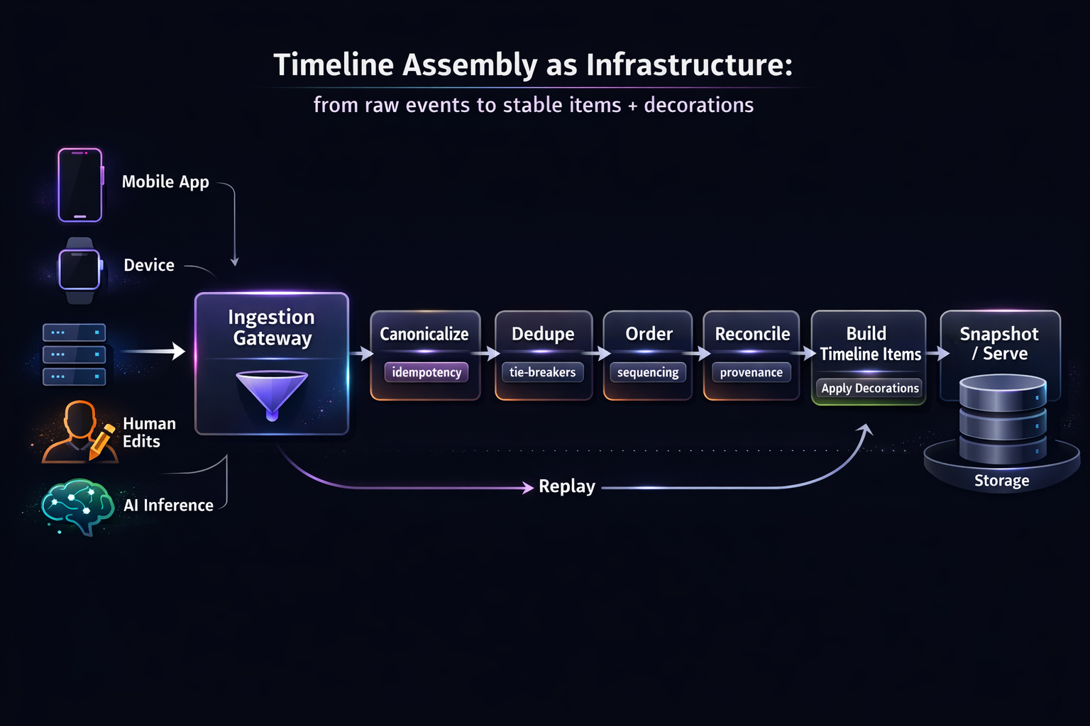 Treating timeline assembly as infrastructure flips the mindset: the timeline becomes a deterministic, replayable pipeline that converts noisy distributed inputs into a stable narrative—one that can explain itself, tolerate late data, and improve intelligence without rewriting the user’s reality.