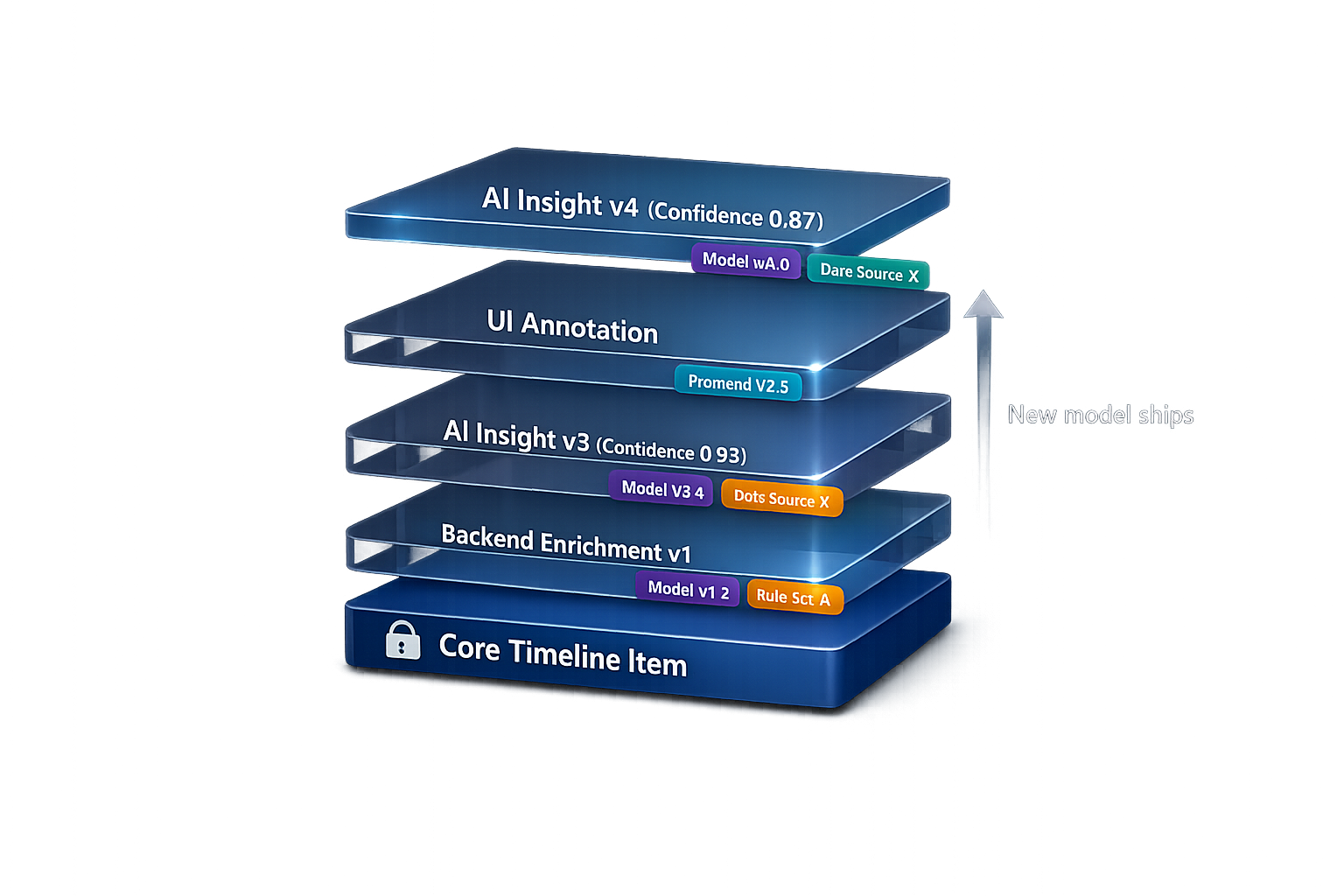 If AI insights overwrite the base item, you force users to re-learn the past every time the model changes.
