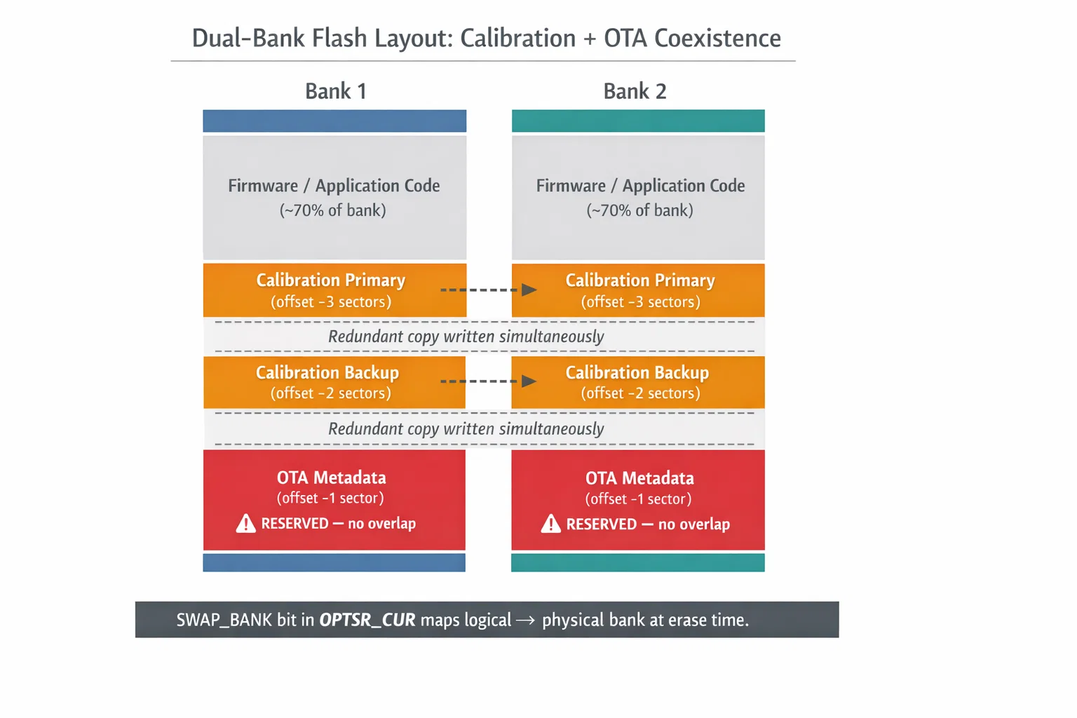 - Calibration storage must be OTA-aware. A fixed address in flash is not