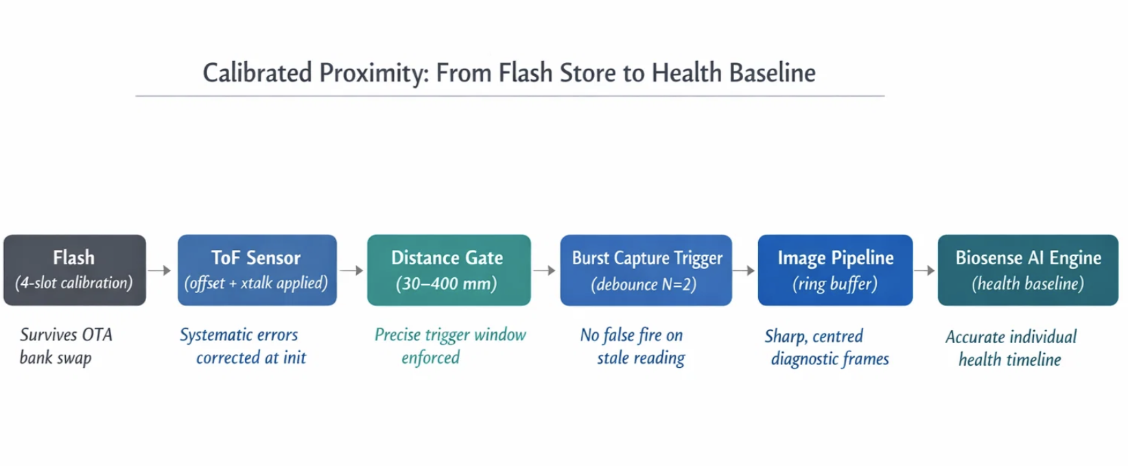 A time-of-flight proximity sensor's accuracy depends entirely on three calibrated